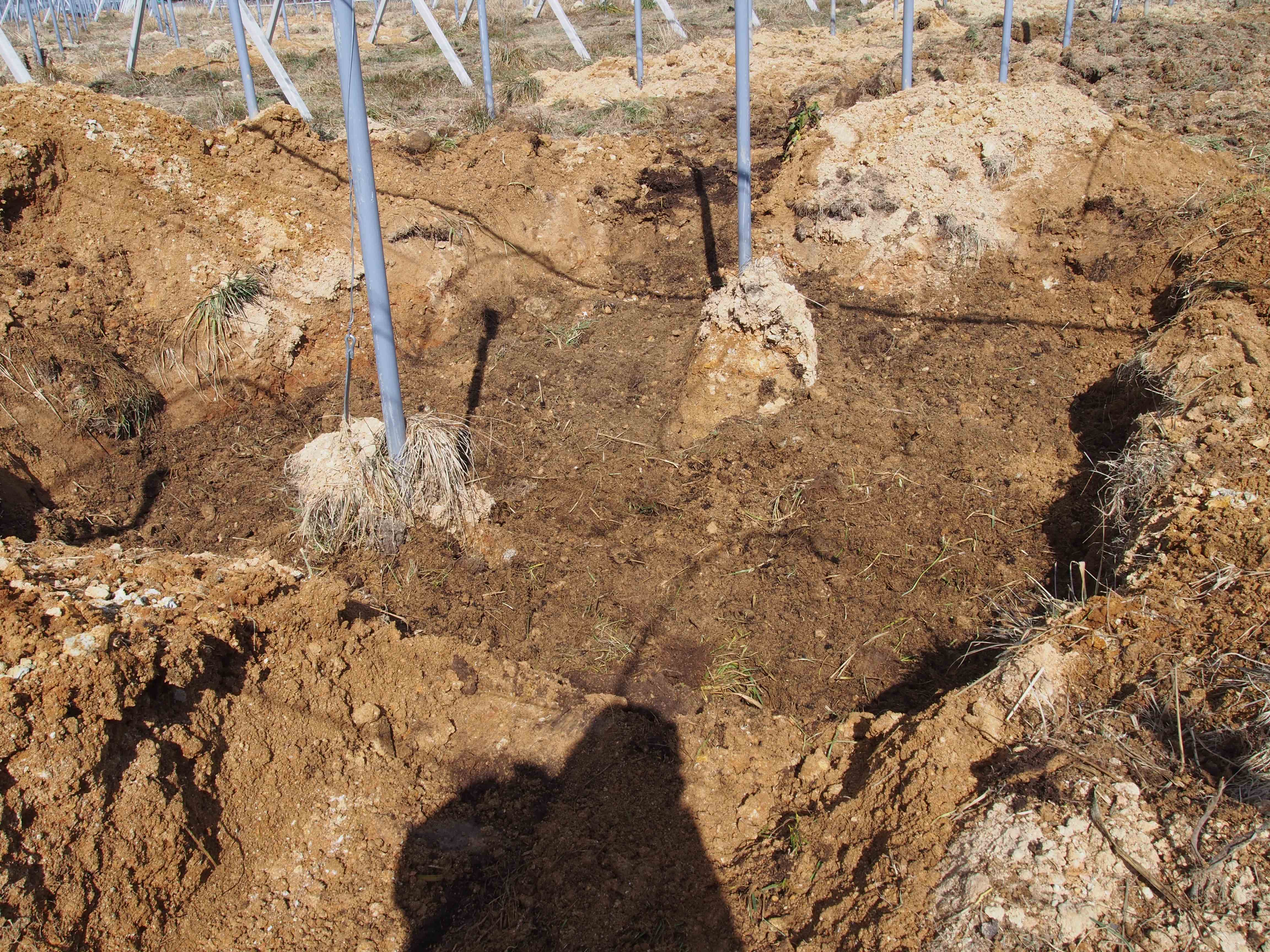 深さに拘ったのはあくまでも水はけの良い層まで達する為と、深く張ってくれる根は乾燥に強くなる点です。