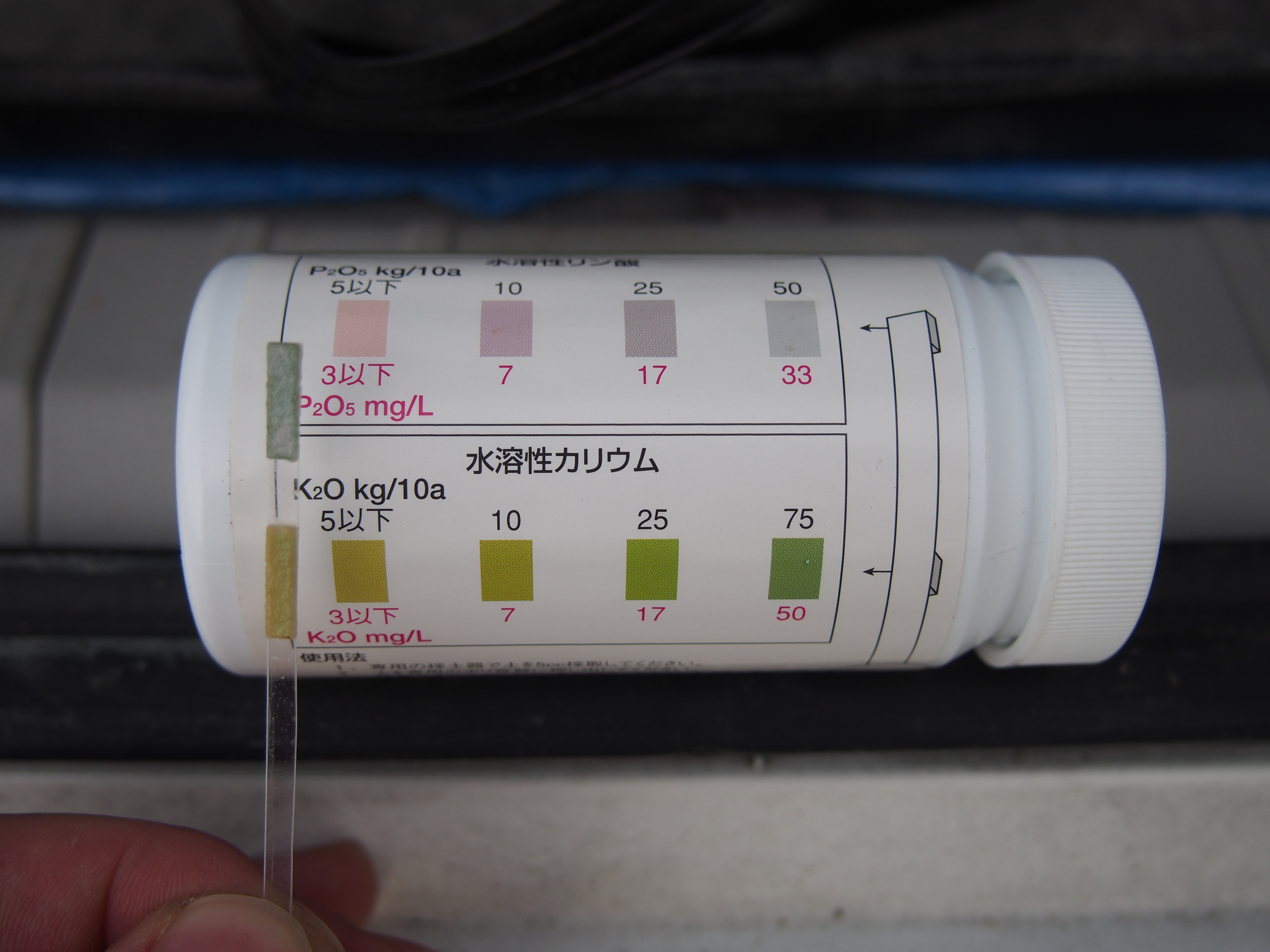 PHは簡単に計測できますが、硝酸態窒素、リン、カリまで測定できます。