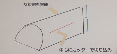 今回は、ビニール内にこもってしまう風を 切り込みを2カ所入れて 風を逃がす方法をとりました。