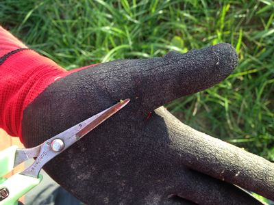 他にも茎に穴あきがあり、はさみでチョキチョキ切り開いてみると1㍉ほどの小さな幼虫が素早い動きで