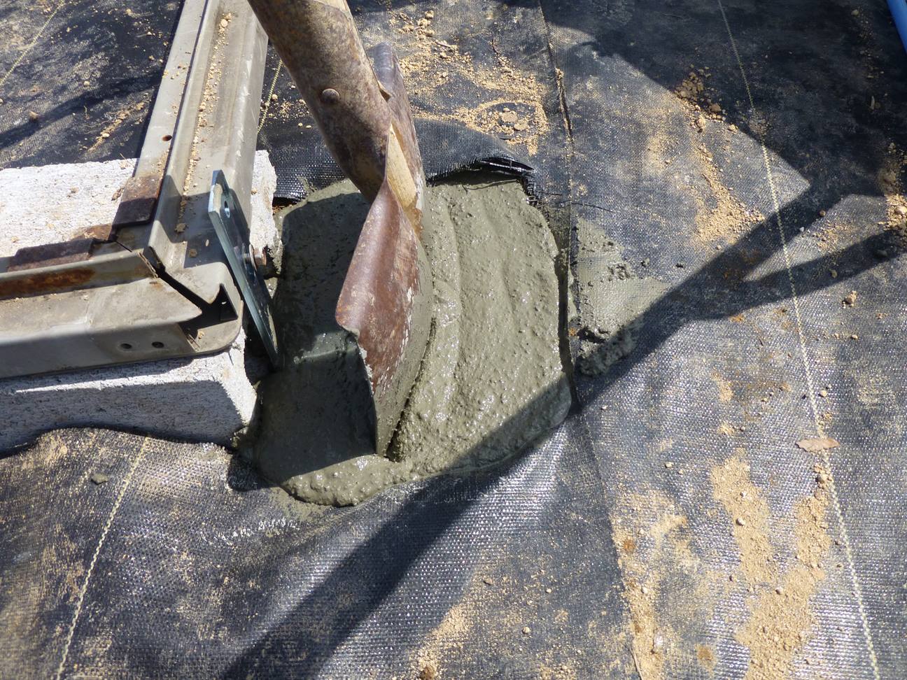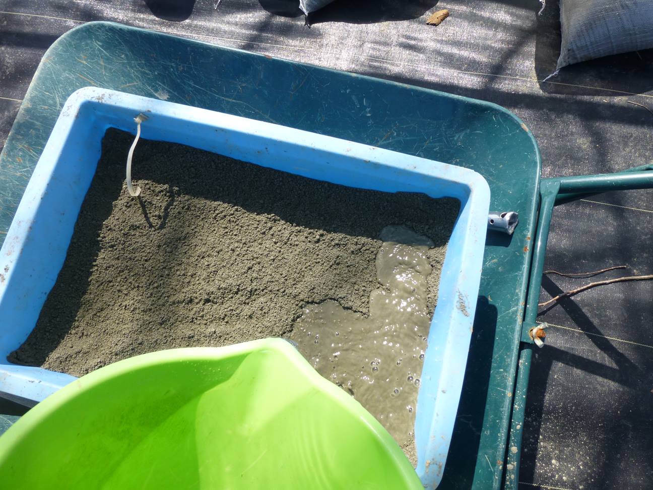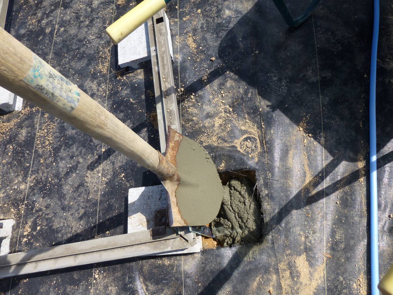 次にモルタルを転倒防止用に作った穴に入れて行きます。