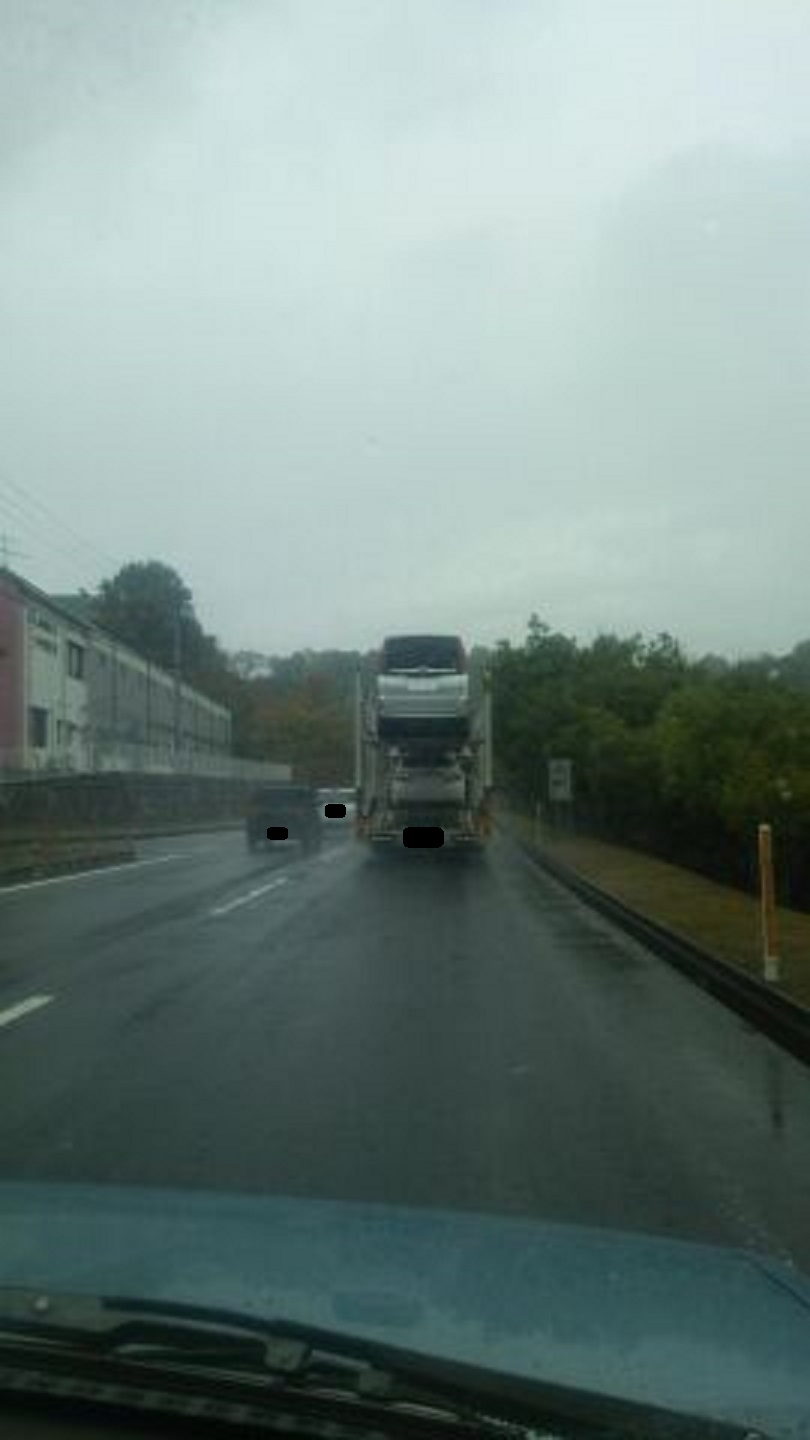 ちょっと分かりにくいですがこの自動車運搬車、上に載っている車が