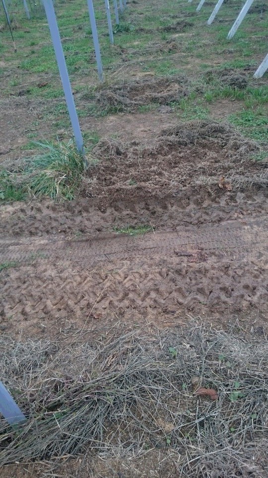 地面がぬかるんで、曲がるときにタイヤが滑り出したので、作業を止めました。