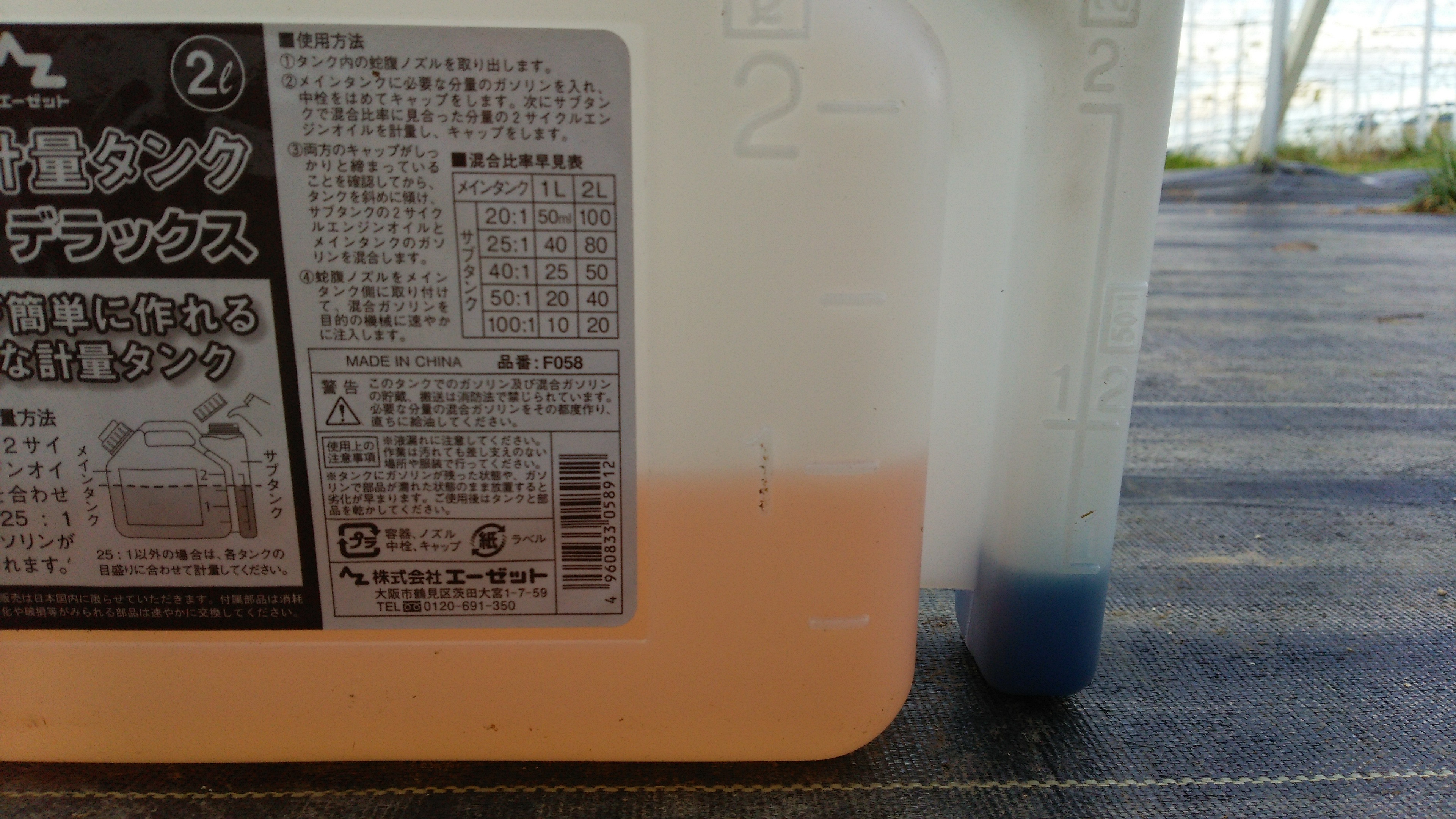 ガソリンもオイルもメモリ1のことろまで入れると50:1になる。