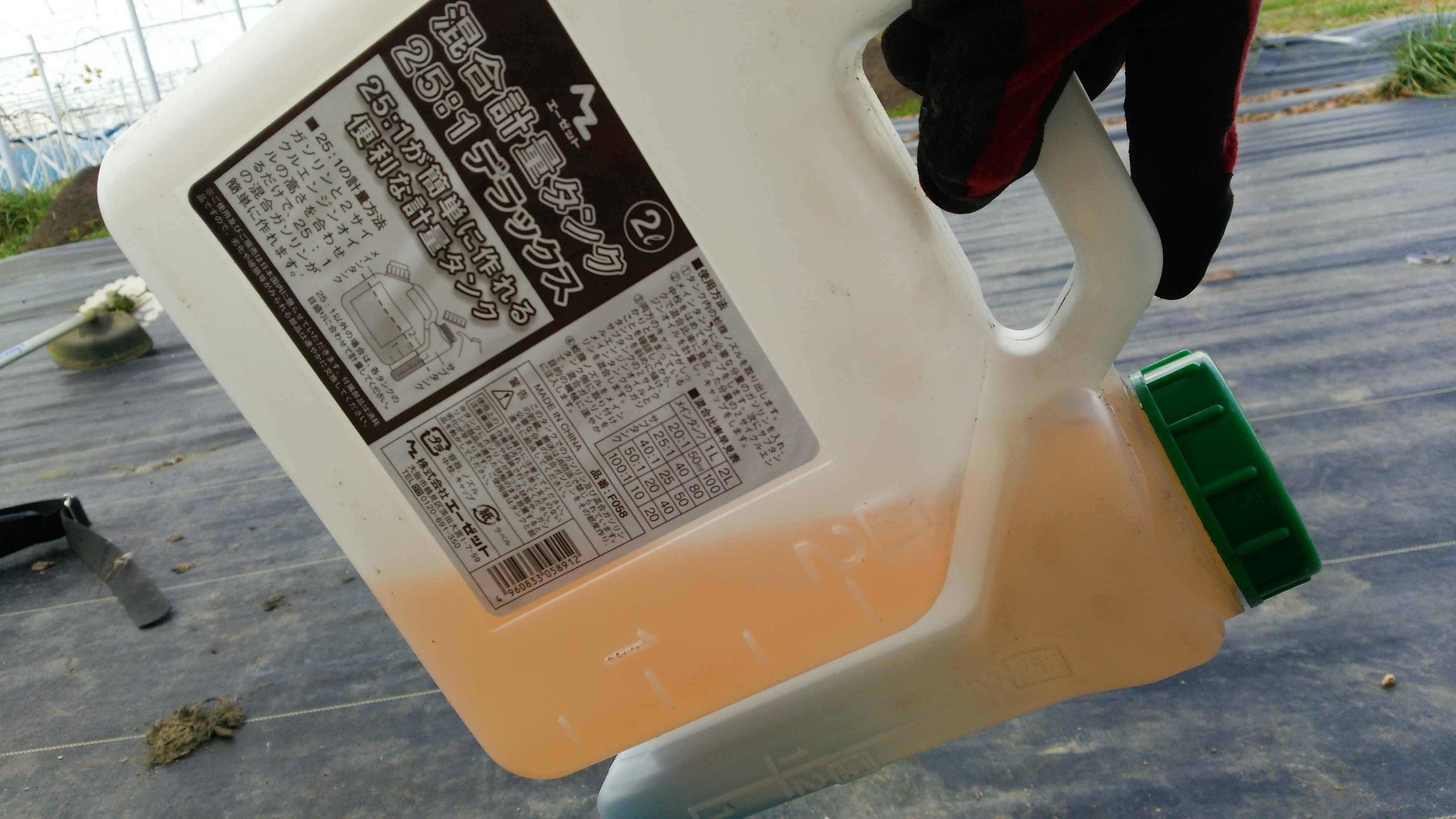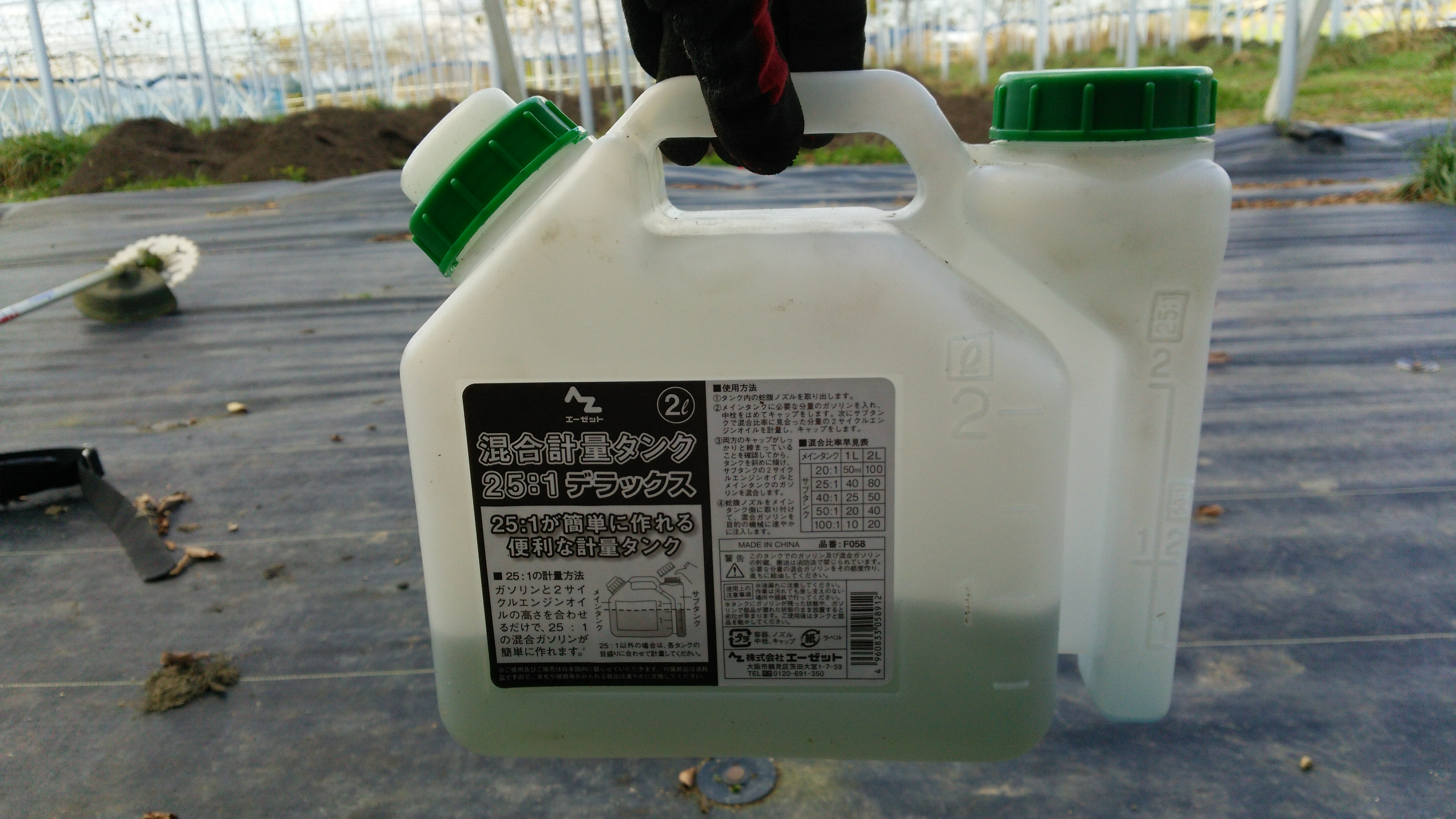 基本的に草刈機は2サイクルエンジンで、カソリンにオイルを混ぜて使用します。