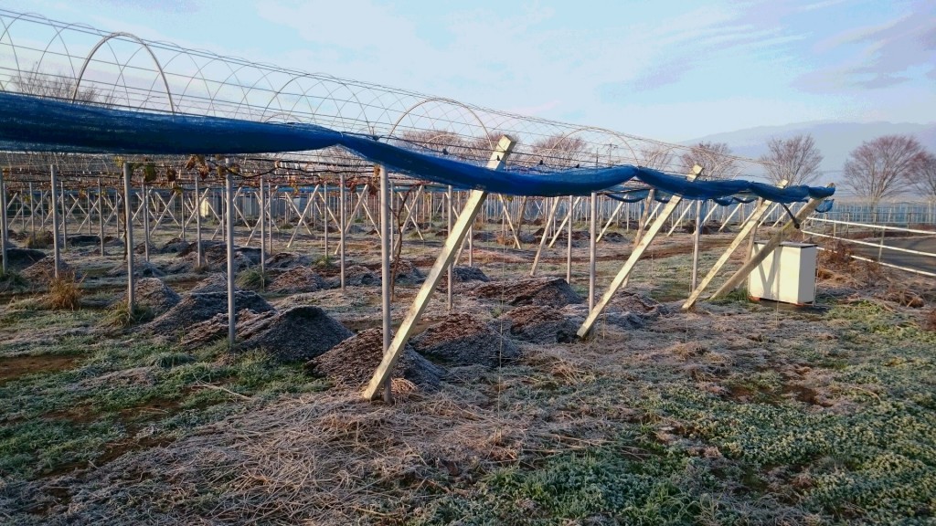 しかし、天空のピオーネ農園は、一面の霜!