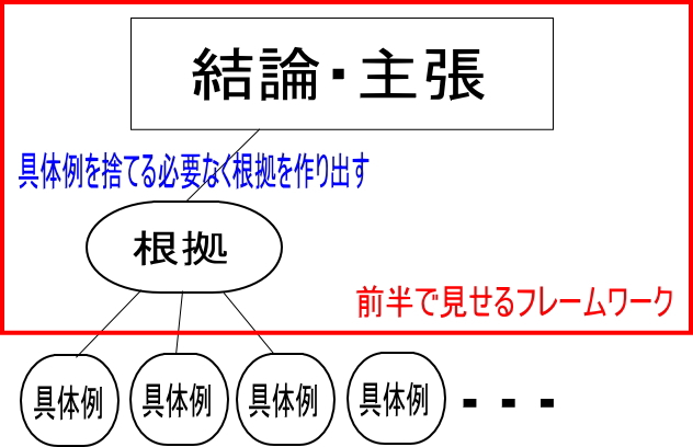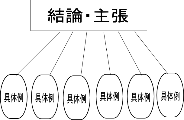 例)具体例をたくさんあげ、結果に導くのではなく、具体例をグルーピングし結果に導く。