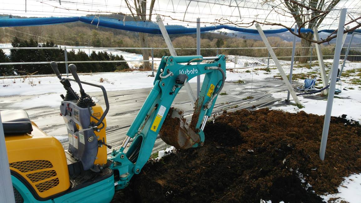 試しに掘ってみるが、レバーが逆で扱いにくい。