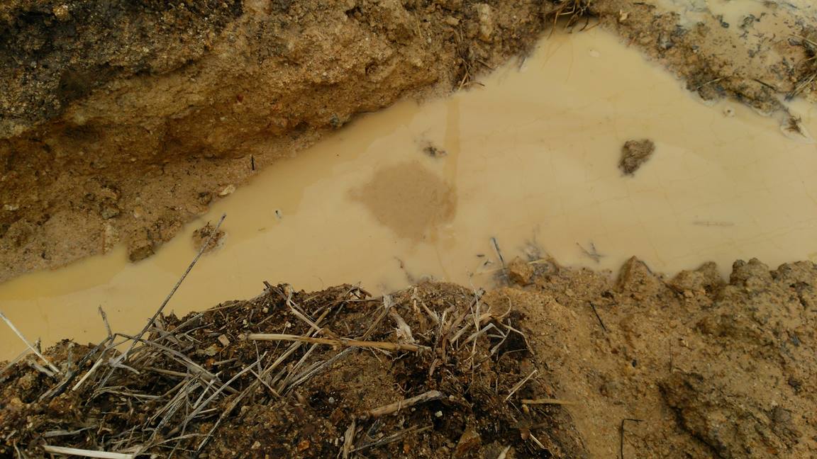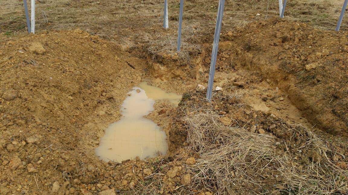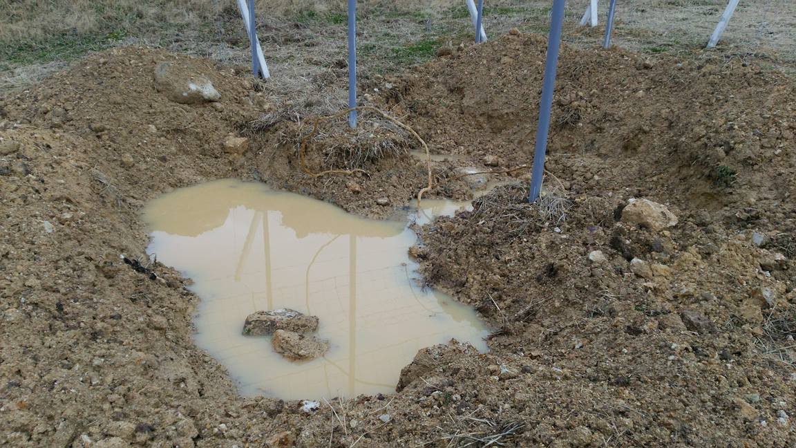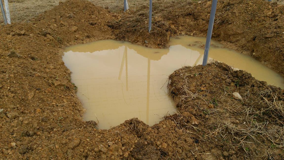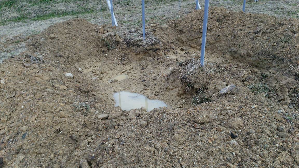山を開拓した場所なので、やはり植穴3m×3m、深さ60㎝~80㎝を掘ると、そこだけプールの状態になる。