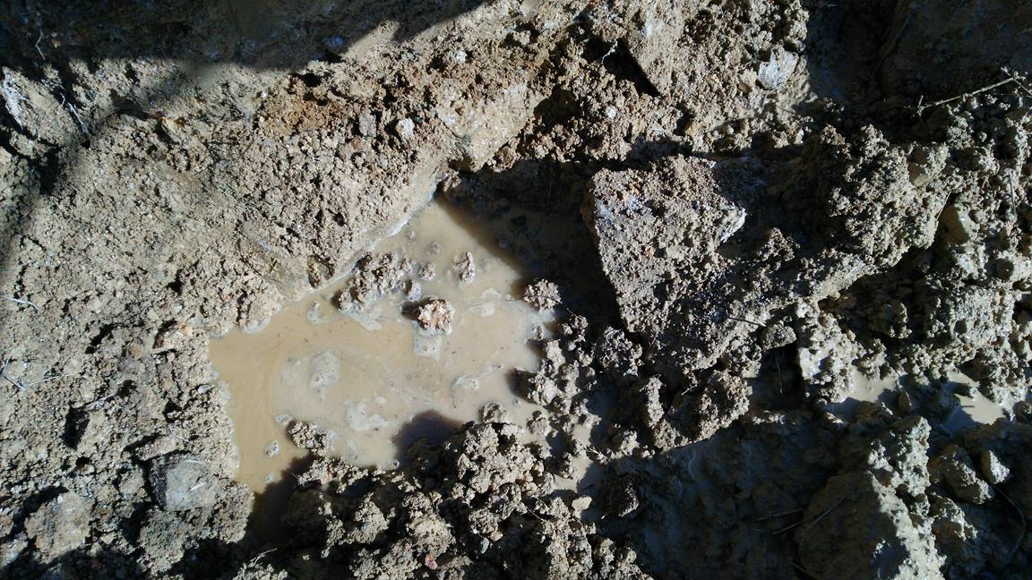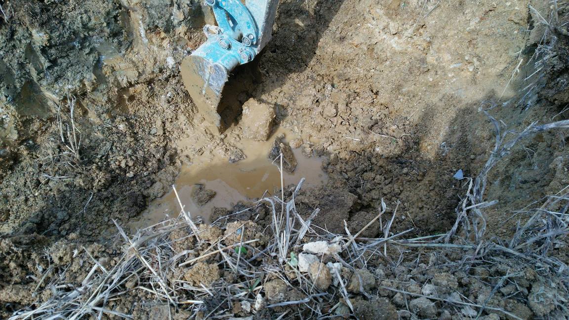 いつも湧き出るところは隙間のような一か所であるので、そこを辿って原因まで掘り進める。