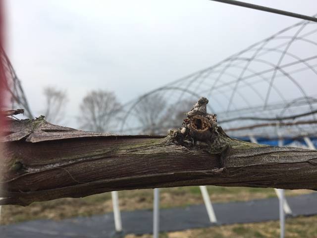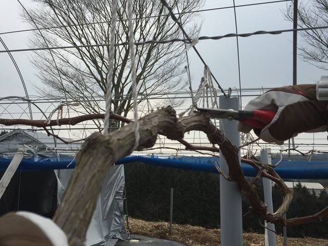 通常なら20芽で切り戻しをしますが、昨年は早くに落葉したので、