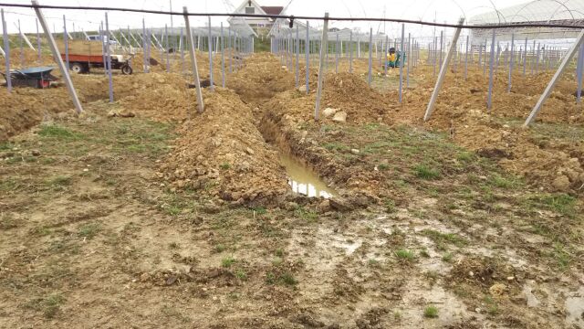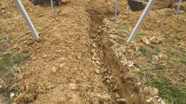農園(中)の植穴を掘ってもらった所、山地という事で石がゴロゴロと出てきます。