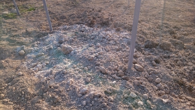 本日の作業は、ユンボで混ぜた土を均す作業の続きと、苗の植付け用の肥料の散布です。