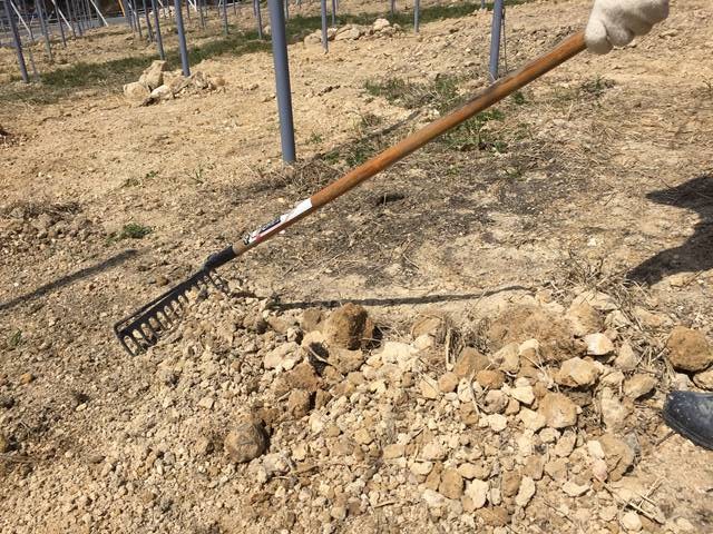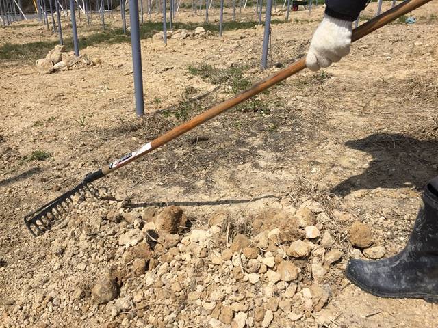 小さな石は まずレーキで集めて(スタローン顔負けの上腕筋になっています( ;∀;))
