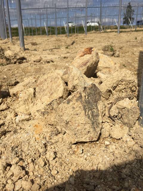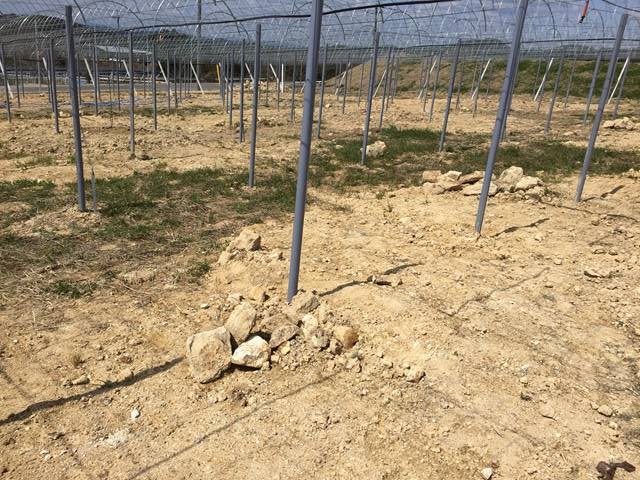 圃場のあちらこちらに大きな石の山が積み上げられています。