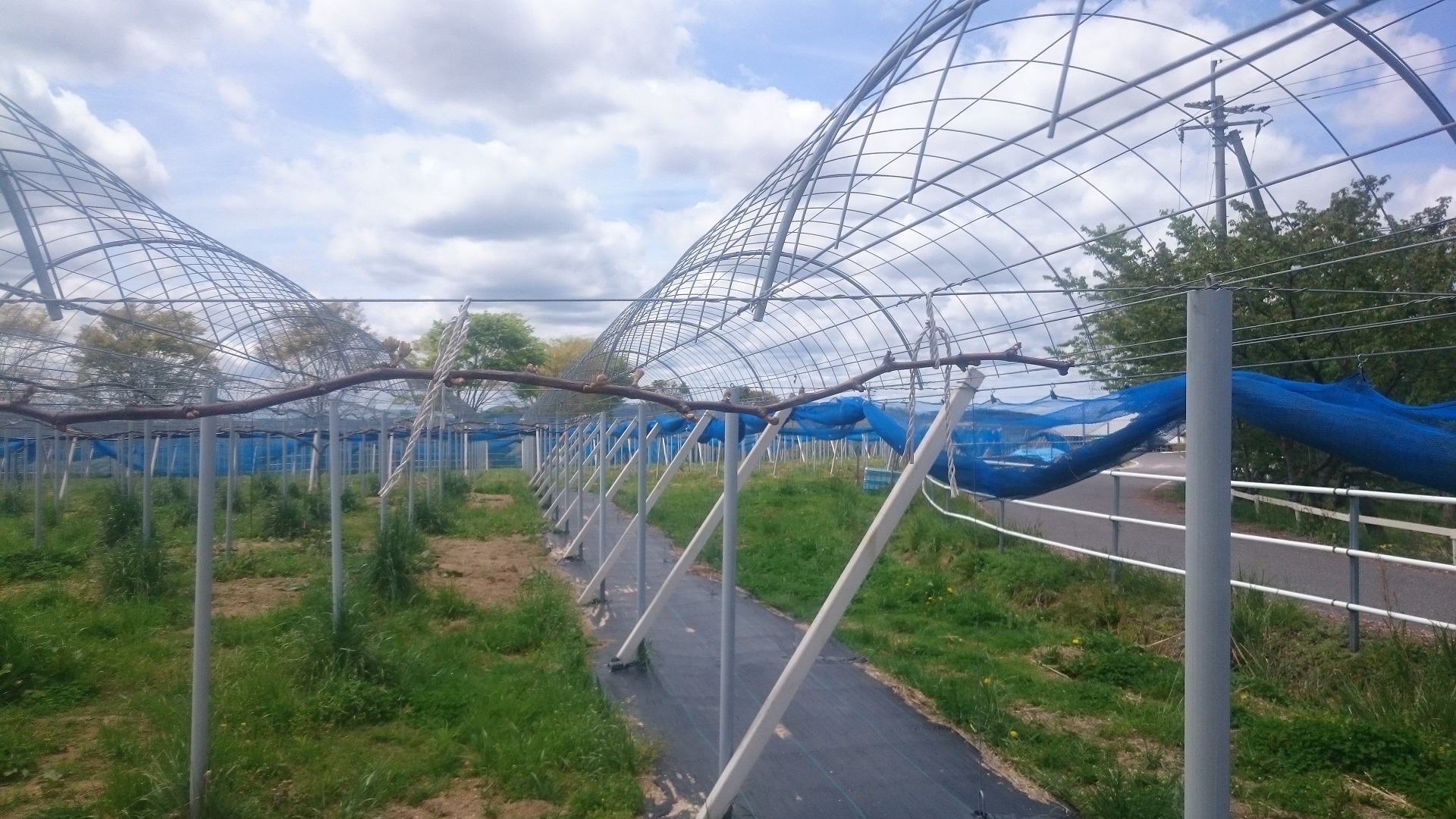 残りの作業は、シャイン園周囲の防草シート1辺、ピオーネ園の樹の周り草刈り・樹の周り防草シート張り、ピオーネ園・シャイン園全体の乗用草刈機での除草です。