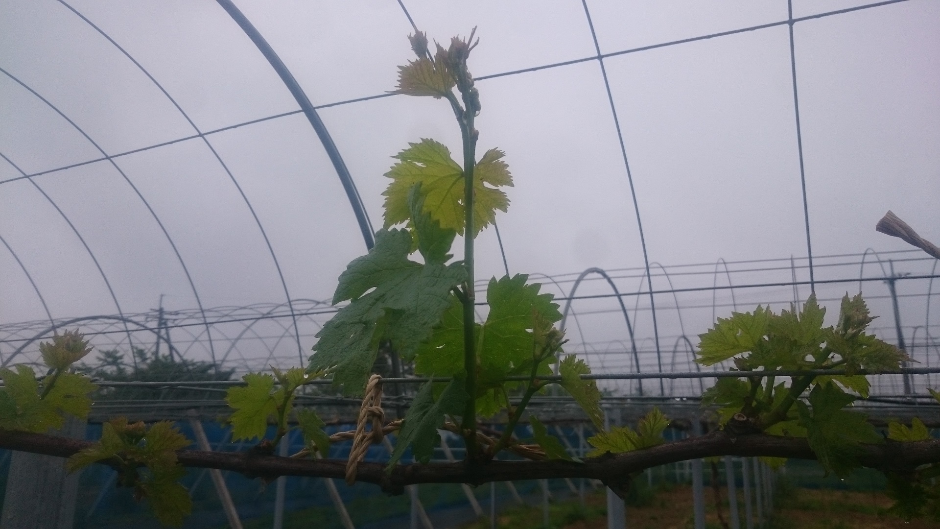 5月上旬はブドウの暦では、新梢伸長期、発芽した後、急激に成長します。