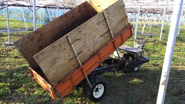 冬の間は作業がないので、草刈機や運搬車、スコップなどを洗って泥を落としておきます。