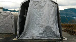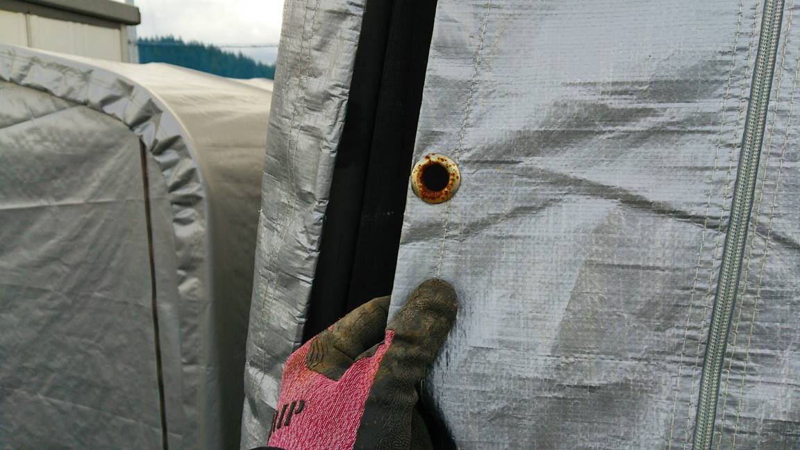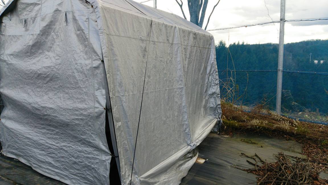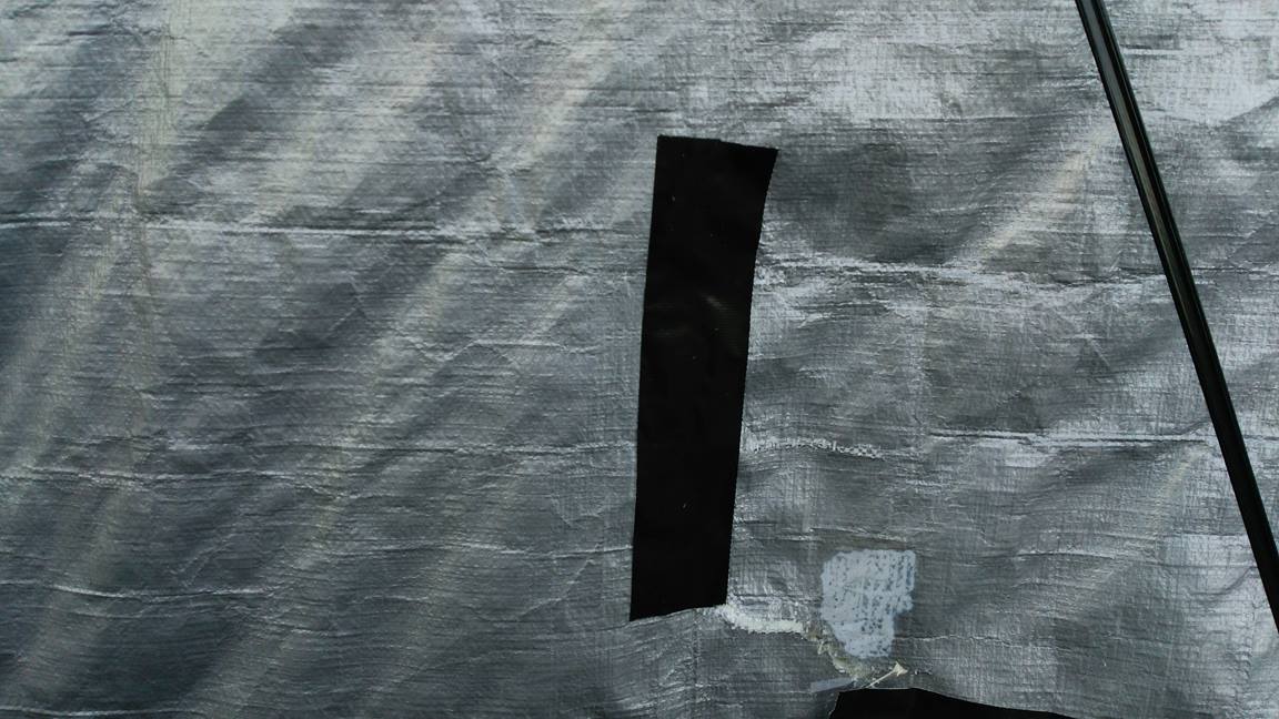 ・シートの破損をテープで補修する。