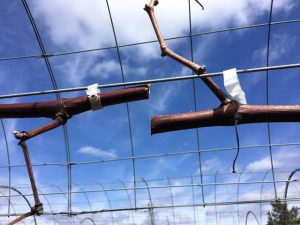 1つの芽座から2本の新梢を伸ばし、結果枝を確保する。