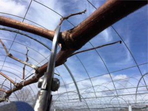 ②前年の結果母枝から16芽~18芽で剪定をする(我が園では16芽剪定)