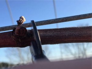 芽の着生位置から先端部の方向に2~3㍉程度の箇所に形成層(写真緑部分)へ達する傷をつける
