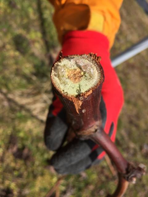 ③結果枝を1芽剪定(芽が小さい、向きの悪いものは2芽剪定)