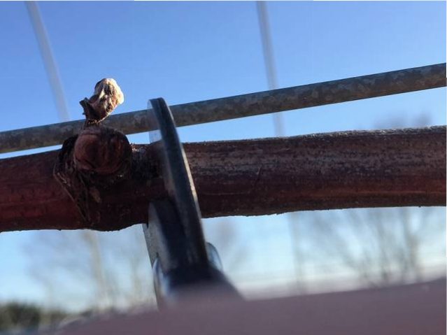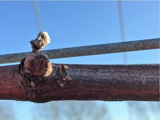 芽とびにより十分な結果枝が確保できない場合は、2芽剪定を行い、
