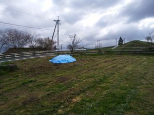 堆肥材料にビニールシート。シートをかけないと雑草だらけになります。