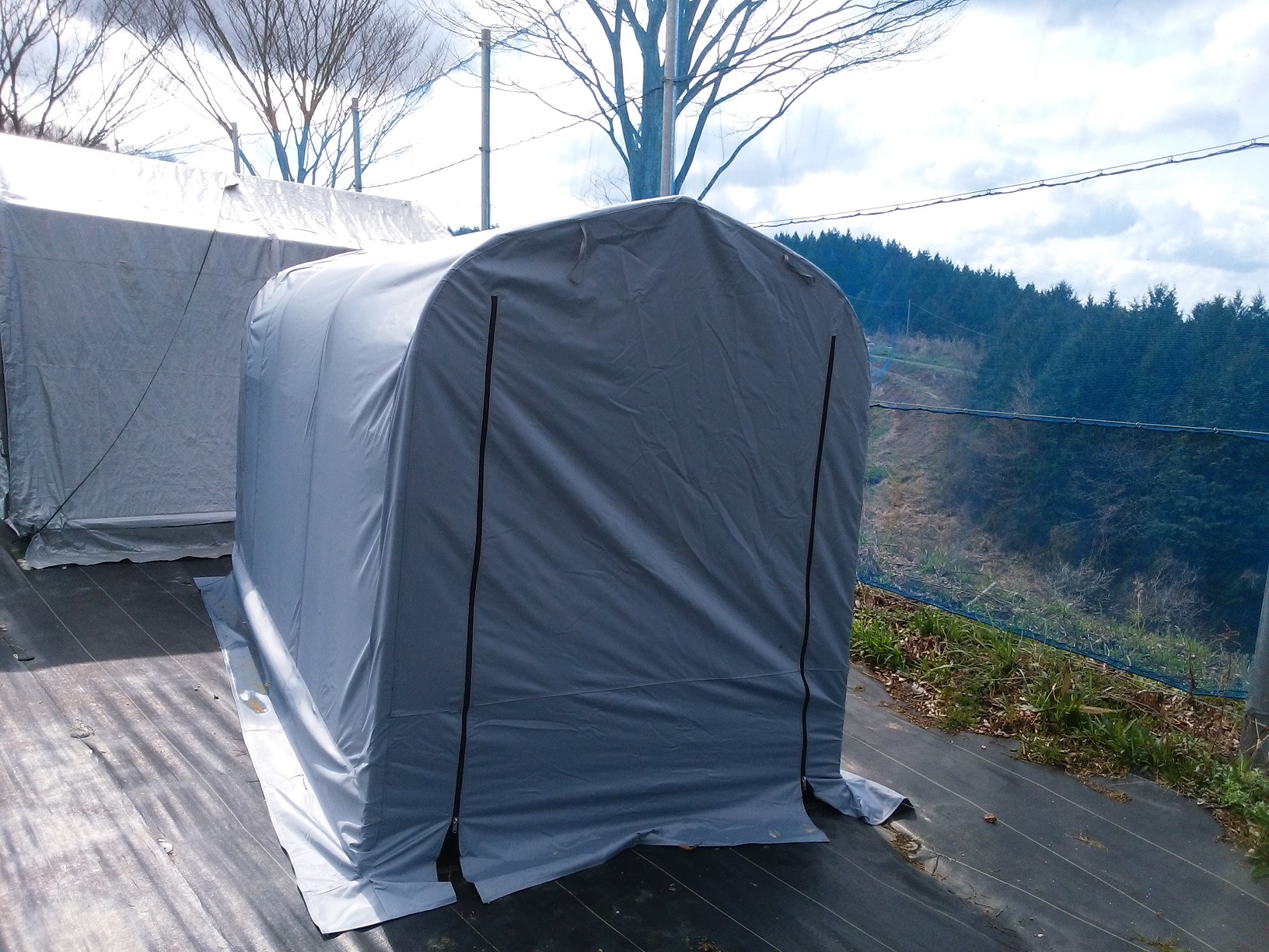 堆肥材料にビニールシート。シートをかけないと雑草だらけになります。
