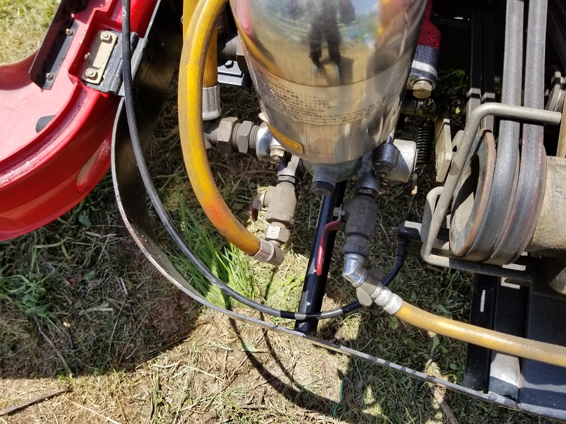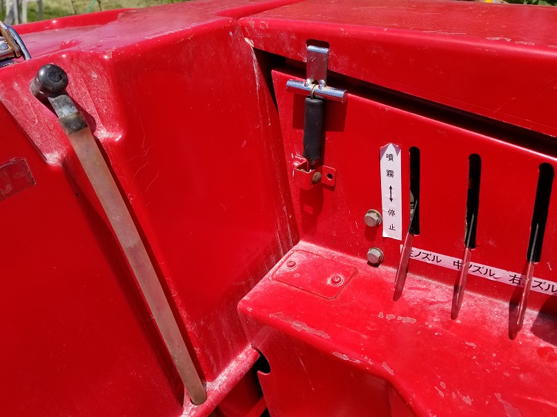 エンジンルームから噴霧口につながっているホースのレバーが横向き(開ける)になっているかどうか見て確かめます。