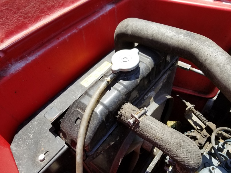 エンジンルームにあるラジエーターに液が入っているかの確認をします。