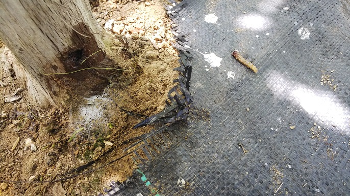 ②コウモリガ幼虫被害あり。樹の周り除草をスケジュール化。その際、樹の周りを虫点検。