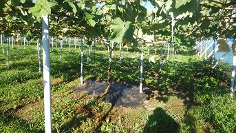 本日の作業内容 ①シャイン園の樹の周り除草 ②ピオーネ園、周囲のマルチ上の雑草除去 ③潅水